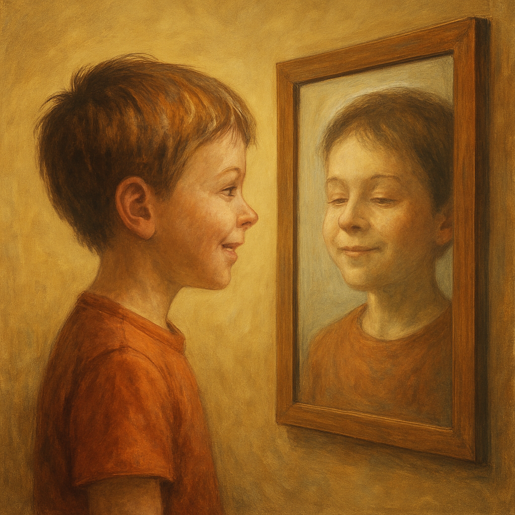 Вспомните, как маленький ребёнок впервые сталкивается с зеркалом. Сначала он улыбается своему отражению, не понимая, что это именно он. Со временем он осознает: это его настоящее лицо. Аналогично, многие из нас большую часть жизни воспринимают свое «я» лишь через призму собственного ума — и начинают считать эту картину своей истинной сущностью.