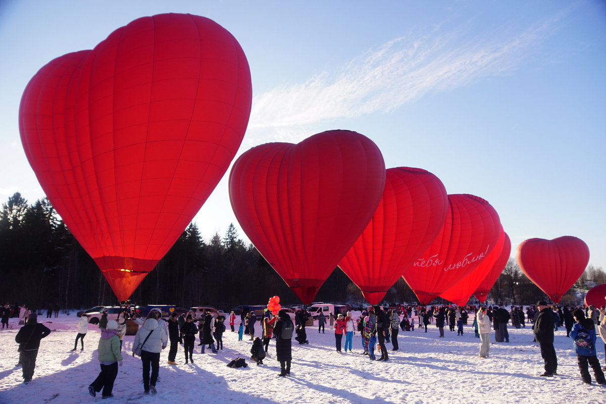Каждый февраль небо над Дмитровским округом наполняется красными надувными сердцами, символизирующими любовь и радость. Это зрелище становится особенно популярным в преддверии Дня святого Валентина, и его время может варьироваться в зависимости от погодных условий.