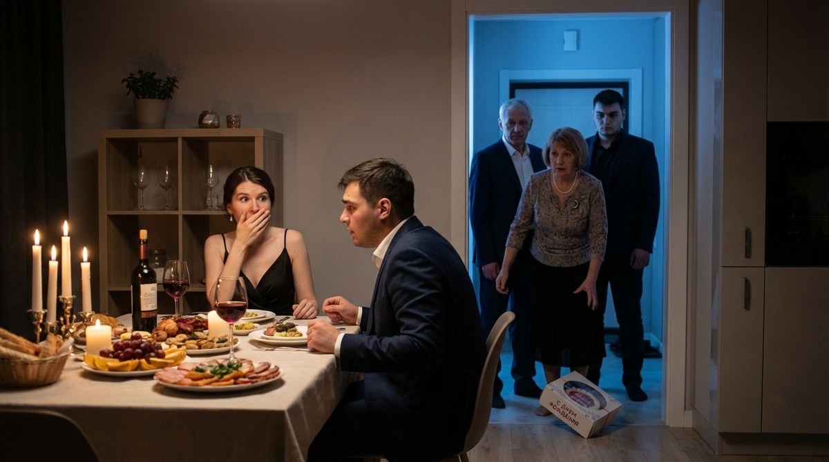 Когда семья Лены приходит к ним домой, присутствует непривычная тишина. Открывая дверь, они встречаются с чарующими ароматами и романтическим настроением, но неожиданно вместо уюта обнаруживают сцену, достойную мыльной оперы: стол, накрытый для двоих, и Лена в платье, сидящая с любовником.