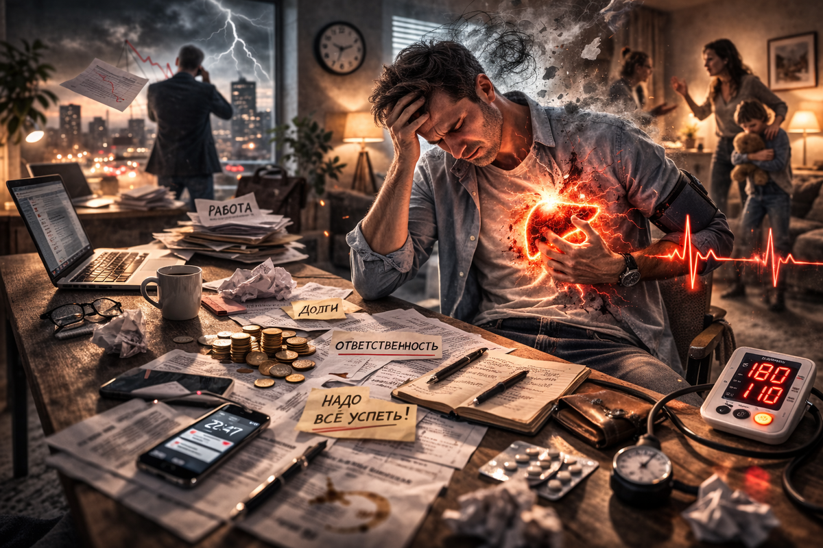Сергей, успешный предприниматель, всегда был в напряжении — мысли о том, что если он остановится, всё разрушится, заставляли его не уклоняться от работы. Вскоре начались физические реакции: тахикардия и панические атаки. Он думал, что его сердце подводит, но на самом деле проблема заключалась в внутреннем напряжении, которое не позволяло ему расслабиться.