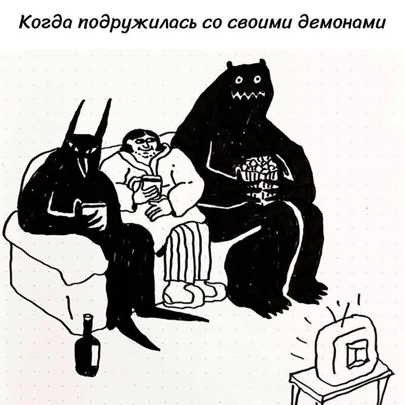 Представьте мем с изображением человека, который обрел гармонию, приняв свою тёмную сторону. Почему такой образ вызывает отклик? Это яркое выражение современного тренда, связанного с самопринятием и внутренним спокойствием.
