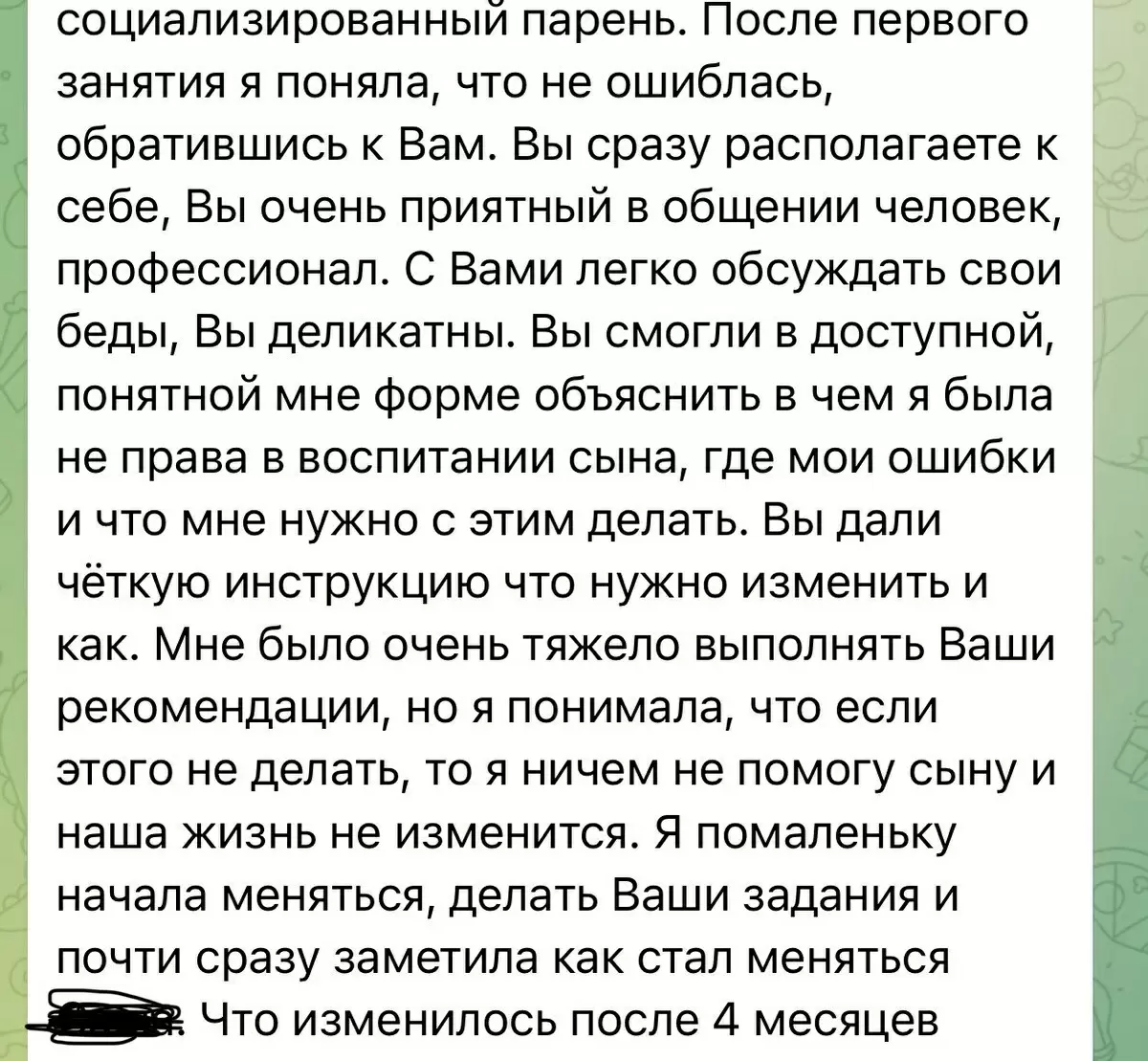 - Мать научилась быть менее контролирующей, что способствовало установлению доверительных отношений.