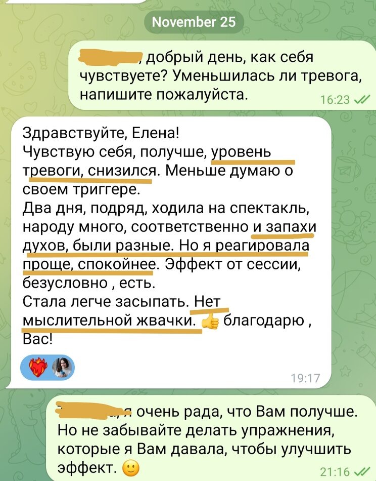 Состояние клиентки можно описать как классический случай, когда истинная причина страха лежит в психологии, а не в физиологии. Запахи, такие как краска и химия, становились триггерами, провоцируя у неё навязчивые мысли: "Я задыхаюсь", "У меня отек Квинке". В результате, каждый визит в салон красоты превращался для неё в настоящую проверку на прочность, а мир суживался до постоянного контроля: девушка проверяла своё лицо в зеркале и следила за возможным "комком" в горле.